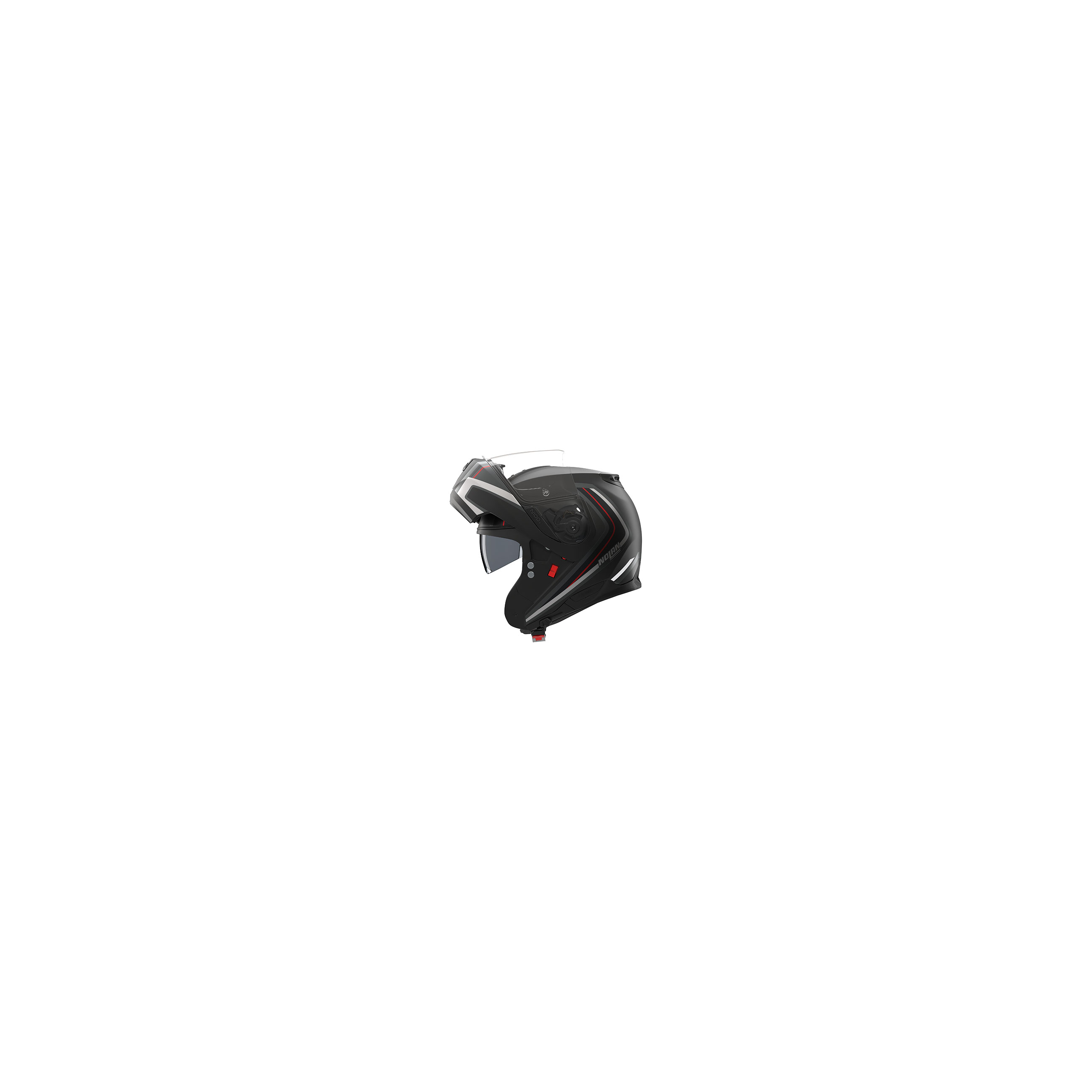 Bradový chránič na N100-6 zaručuje svobodu otevřené (J) přilby a ochranu integrální (P) přilbyEliptický rotační pohyb bradového chrániče umožňuje minimalizovat rozměry přední části, když je chránič otevřený, což dodává N100-6 aerodynamickou linii. Otvírací systém Dual Action umožňuje mimořádně snadné otevírání.